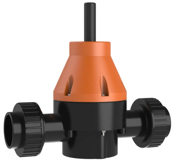 The Truflo BRP Series Back Pressure/Relief Valve serves a dual function. When installed downstream of a pump, it operates as a back pressure valve, maintaining constant pressure beneath the metering pump.