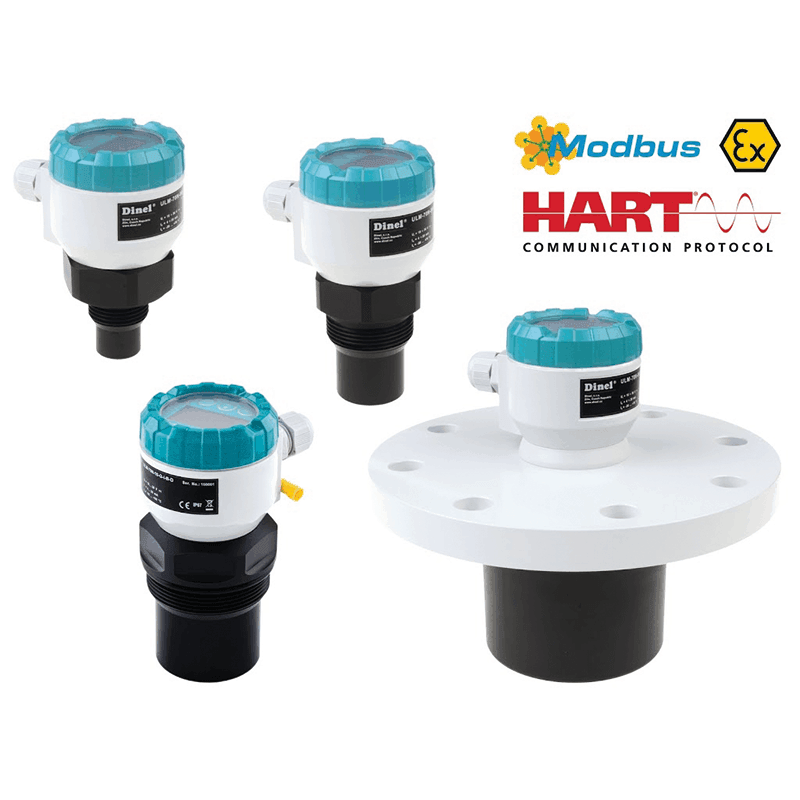 The ULM® ultrasonic level meters are compact measurement devices including an electroacoustics converter, central proces- sor unit and display module. Using the electroacoustics converter, the level meters transmit the sequence of ultrasonic pulses that spread towards the surface level. The converter recuperates reflected acoustic waves that are subsequently processed in the electronic module. The intelligent evaluation block filters out interfering signals, compares the cleaned received signal with the false reflection map (e.g. from mixers, ladders, reinforcement etc.) and selects a suitable reflection (echo). Based on the period during which the individual pulses spread towards the surface level and back and based on the measured temperature in the tank, the instant distance to the surface level is calculated. According to the level height, the level meter output is set: :current 4 -20 mA with HART® protocol or output RS-485 Modbus and the measured value is displayed on the display.